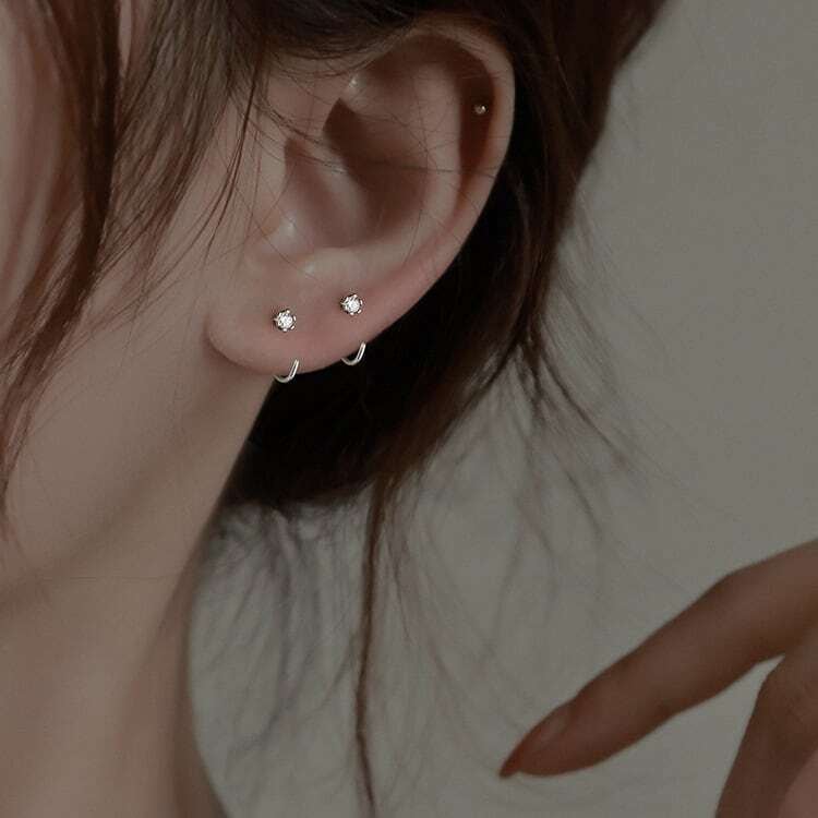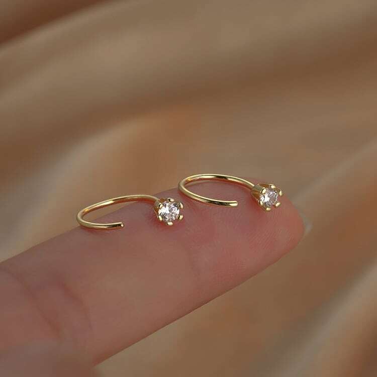 控えめな輝きが耳元に寄り添う、13mmのミニマルなカーブピアス。