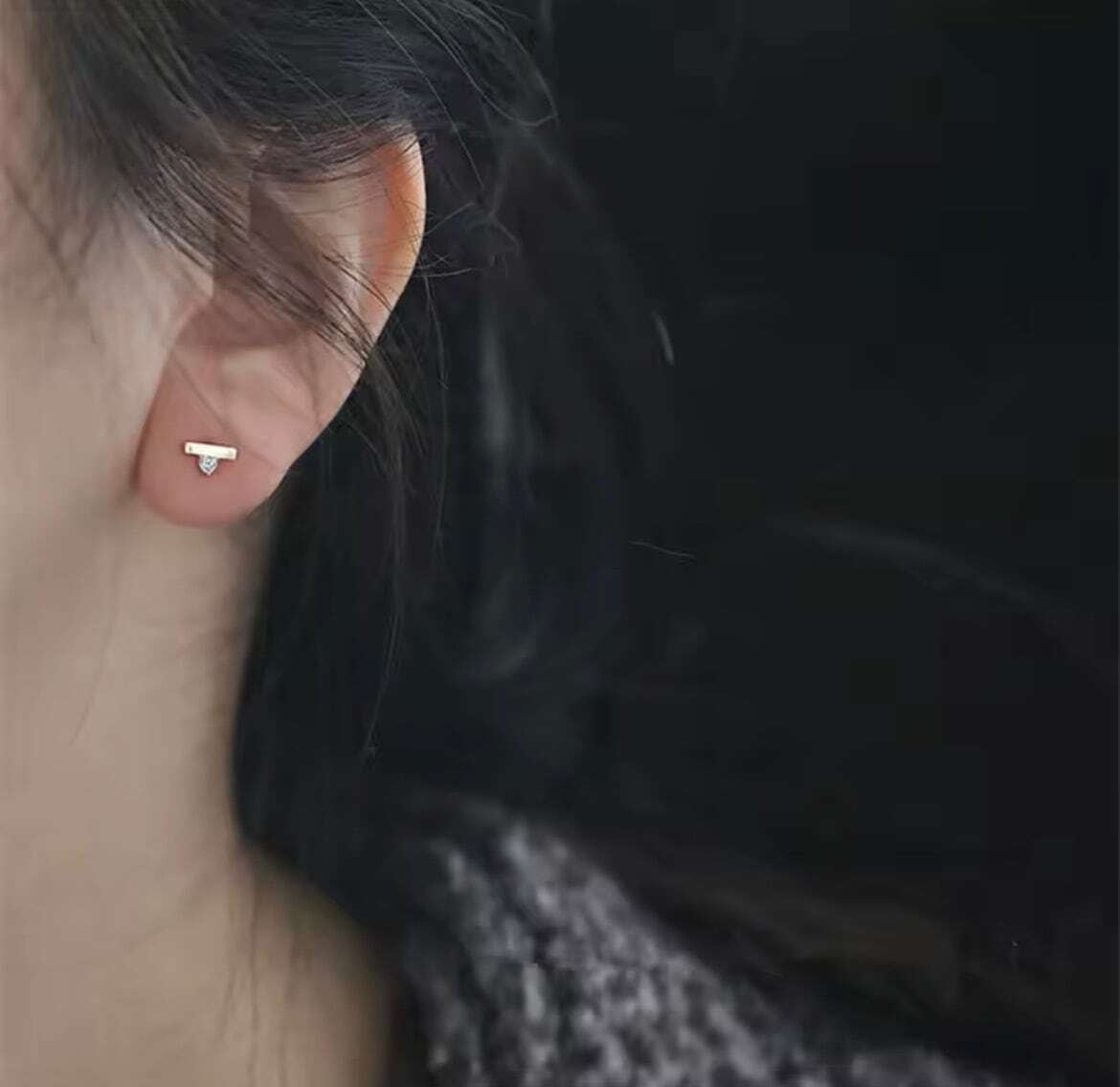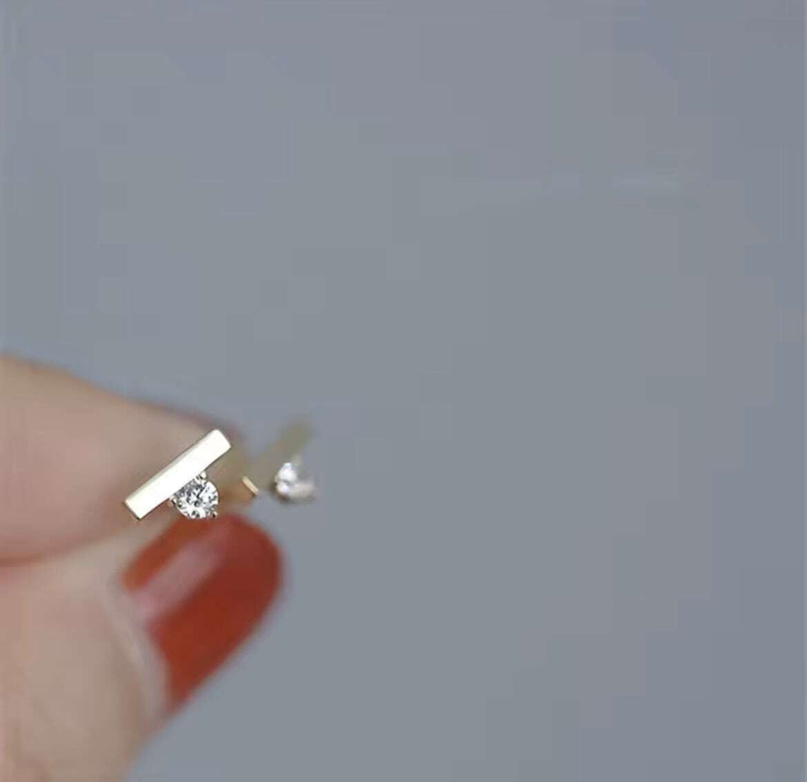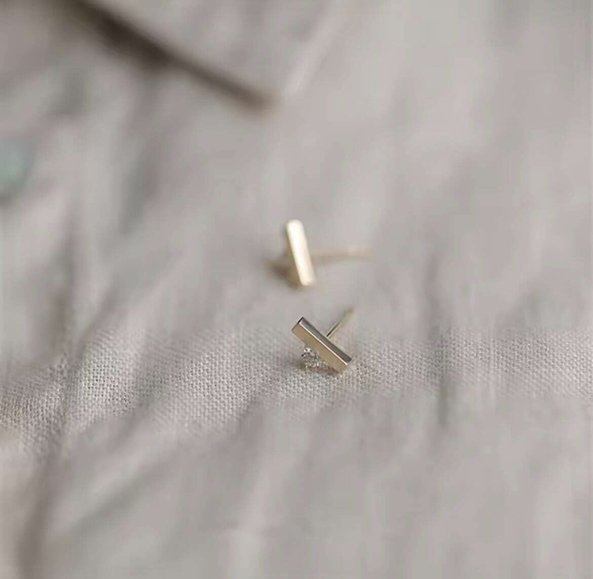 繊細なバーラインの下に、小さなジルコニアがさりげなく輝くミニマルピアス。