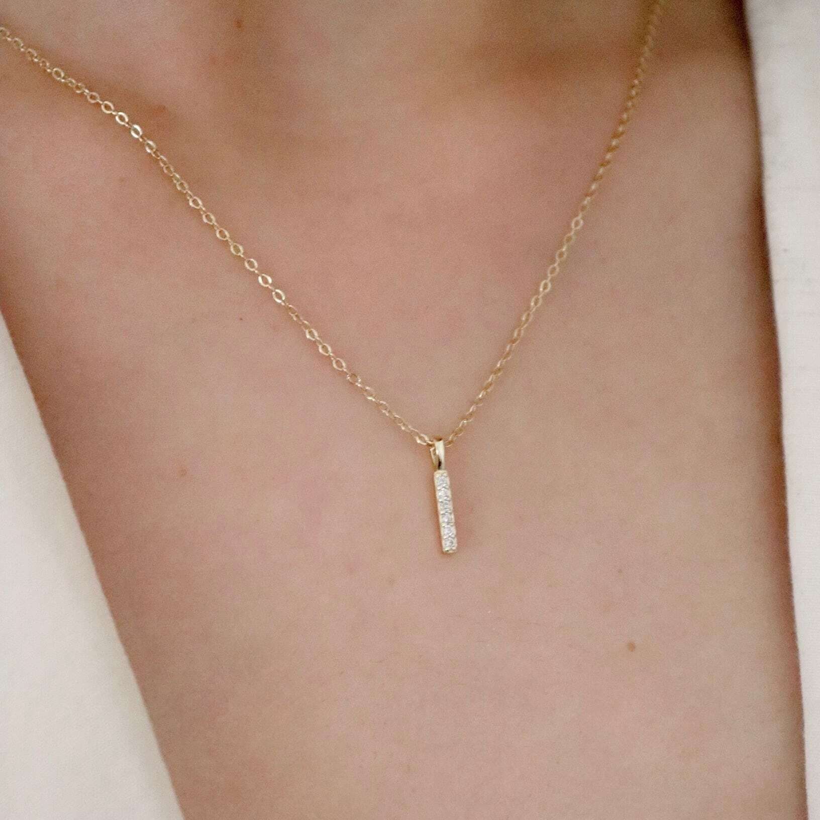 華奢なチェーンに寄り添うようにきらめく、6粒のジルコニアをあしらったバータイプのネックレス。