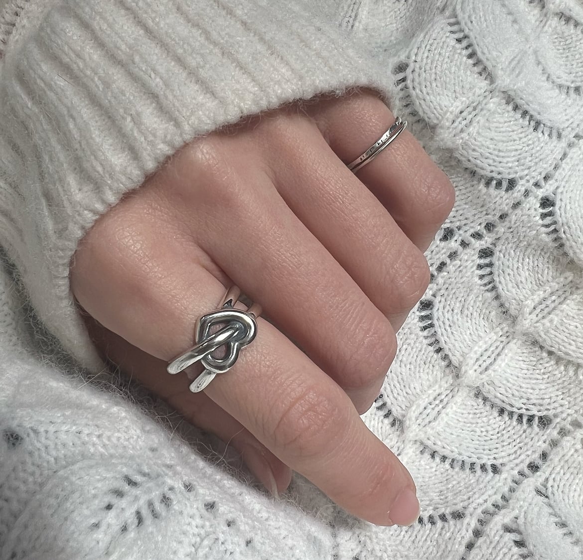 silver925素材の立体的な結び目で表現したハートノットモチーフリング。