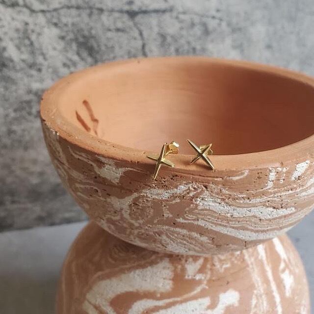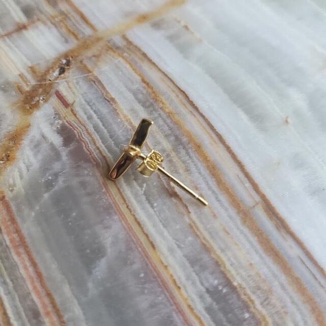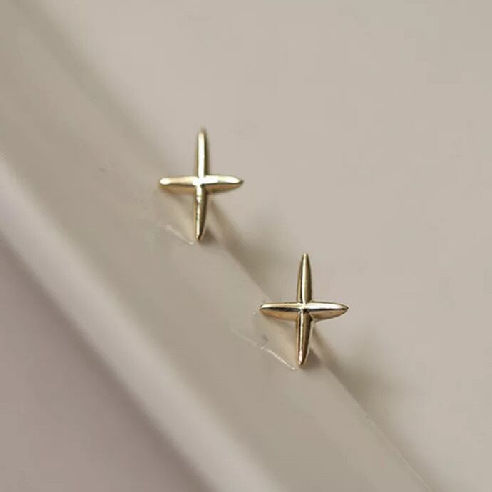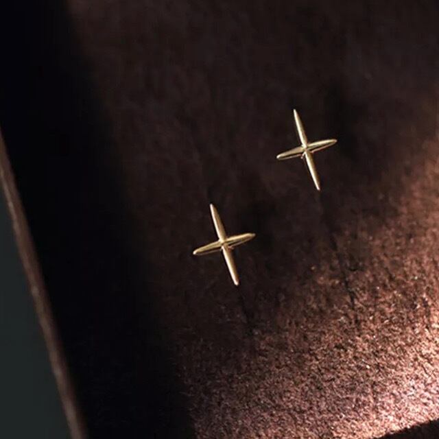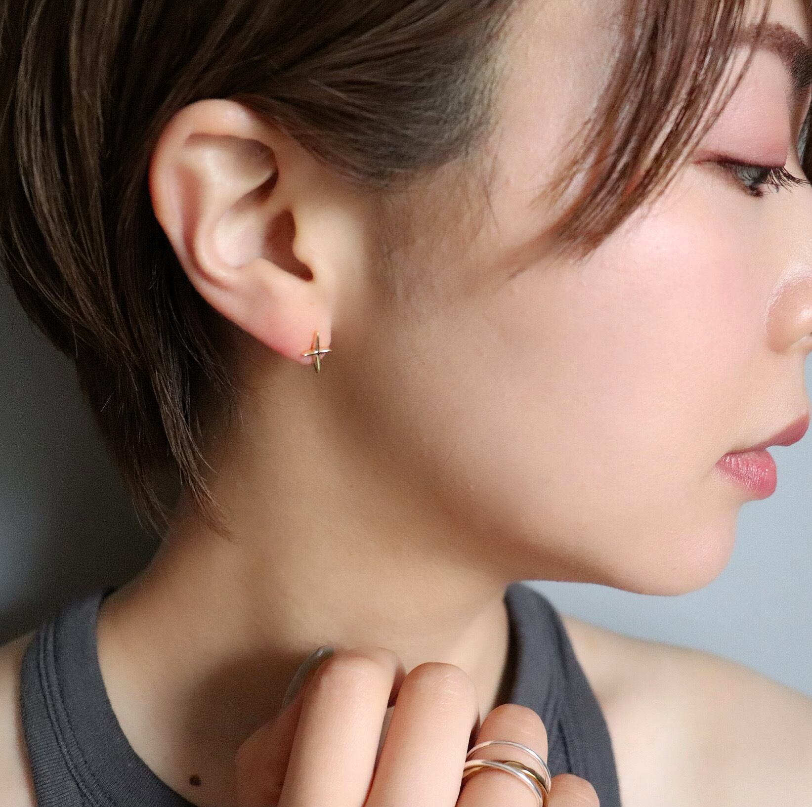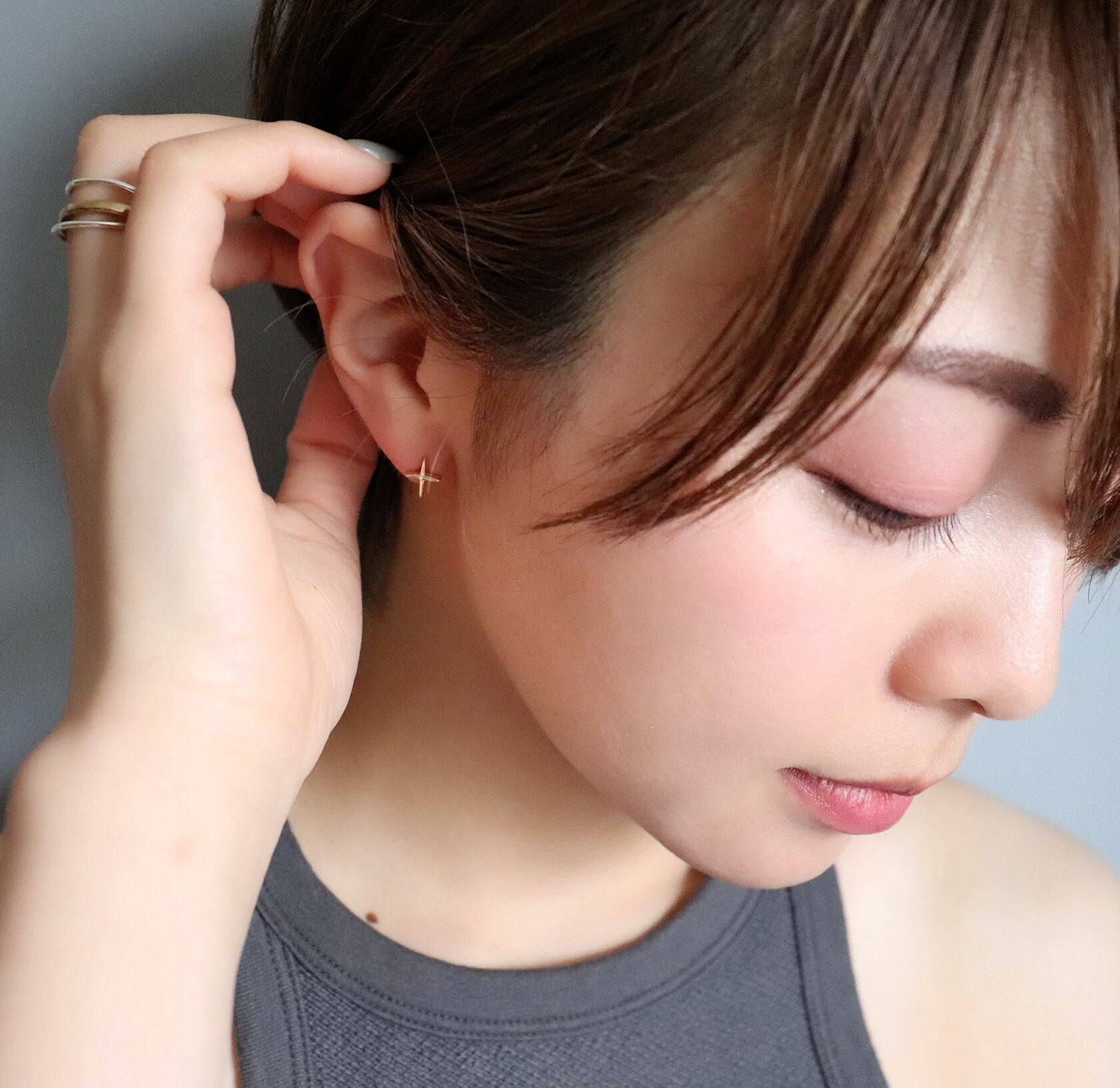 Clair(光)の名の通り、繊細な光を宿すゴールドカラーのクロスピアス。