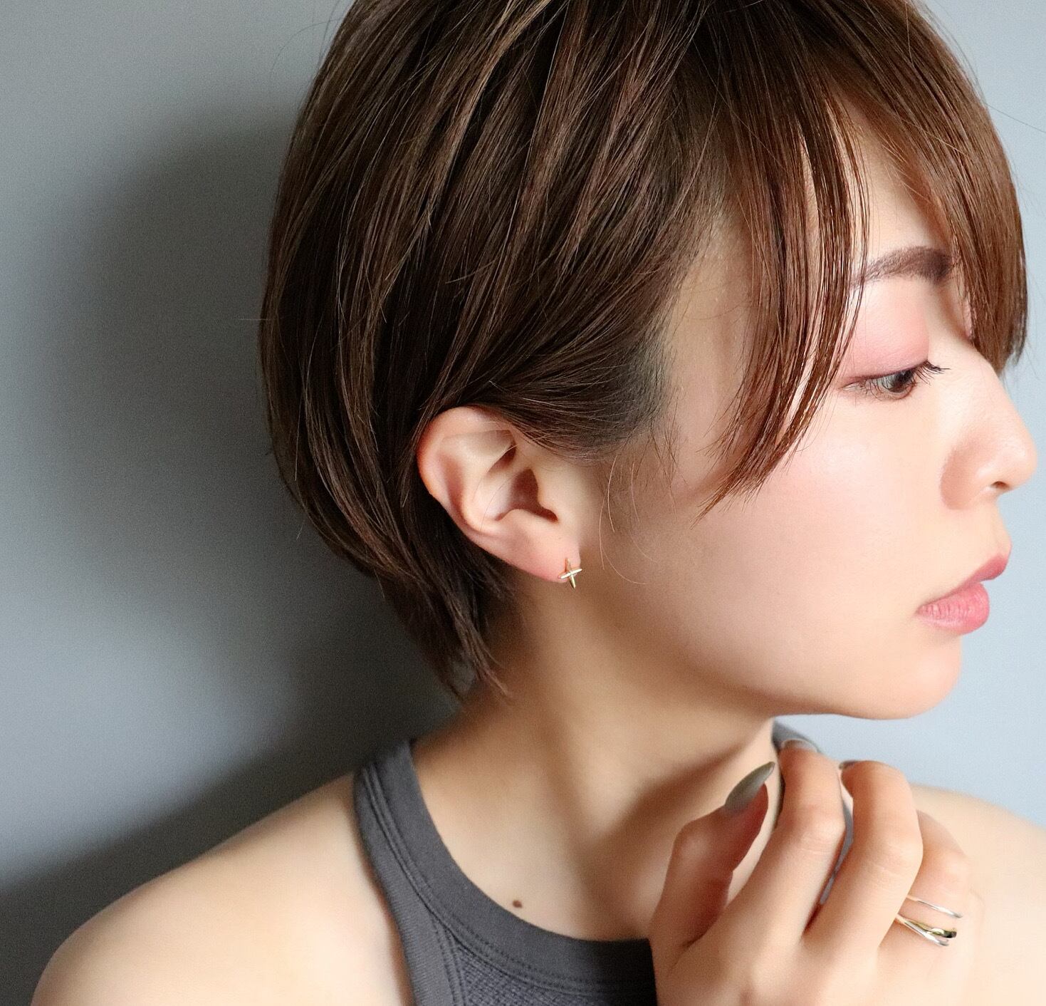 華奢なサイズ感なので、イヤーカフとのレイヤードも楽しめるアイテムです。