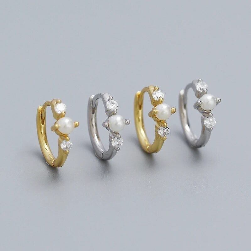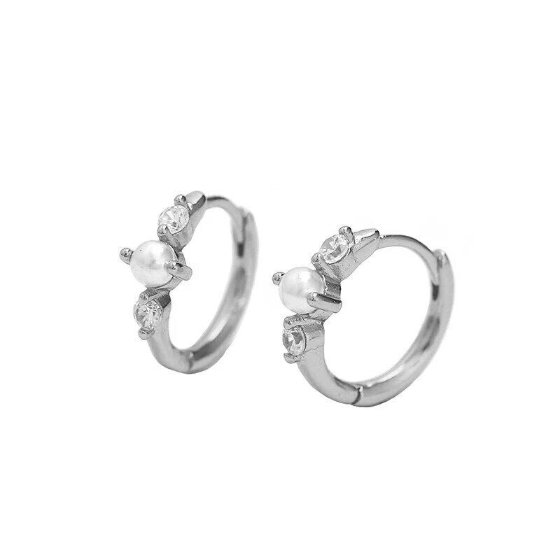 ミニサイズのパールとキュービックジルコニアが、洗練されたムードを演出するデザインです。